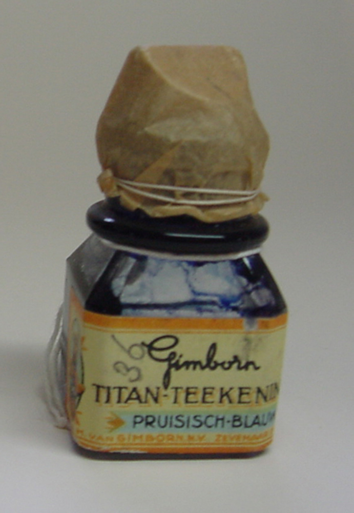 Inktfles van glas gevuld met Pruisisch-blauwe Titan ...