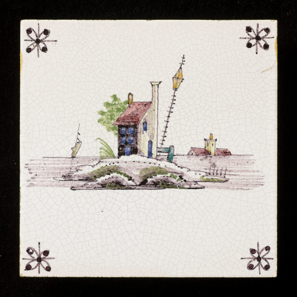 Tegel in tinglazuur, voorstellende: landschap (eilan...