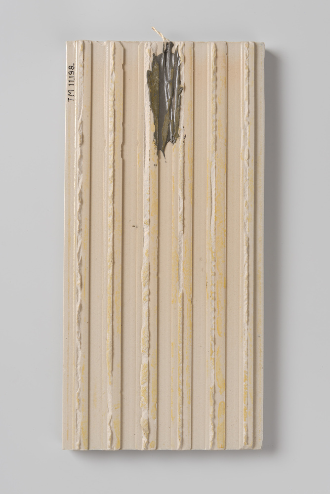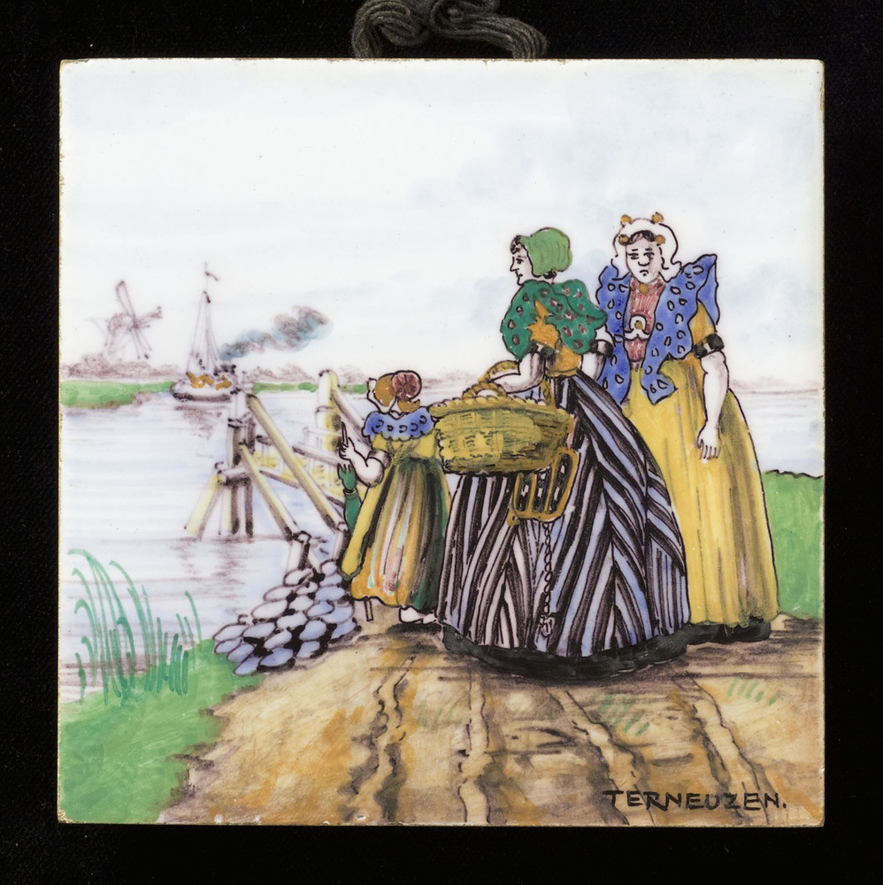 Tegel in cloisonné-techniek, met voorstelling: Koren...