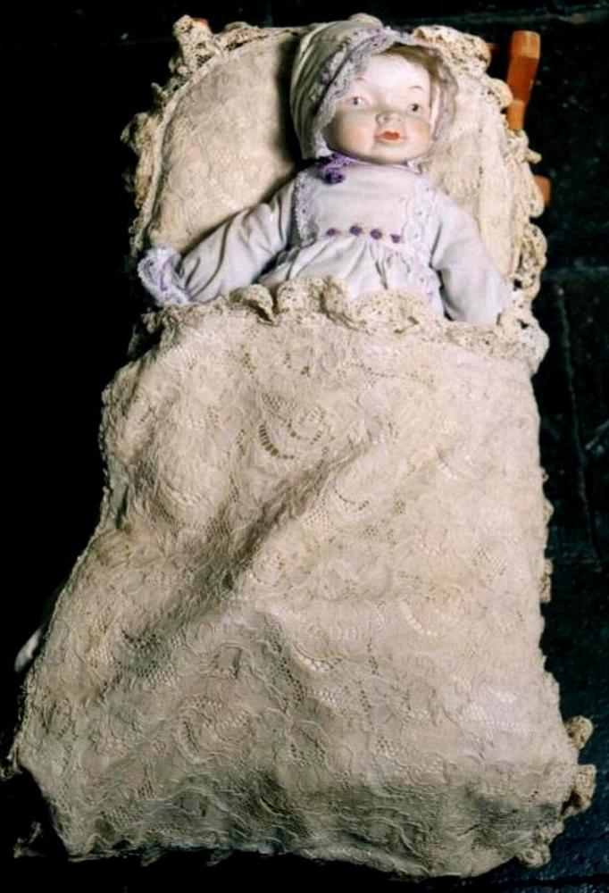 pop. Handen en hoofd van porselein, lijf opgevuld me...