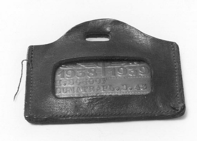 Rijwielbelastingplaatje 1938/1939, in hoesje