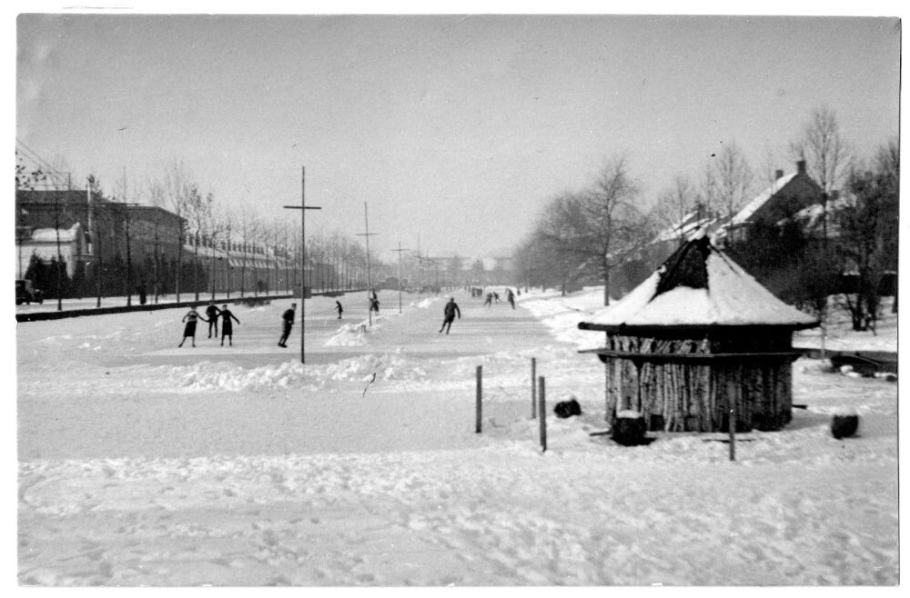 Foto, voorstellende ijspret, de Triosingel te Culemb...