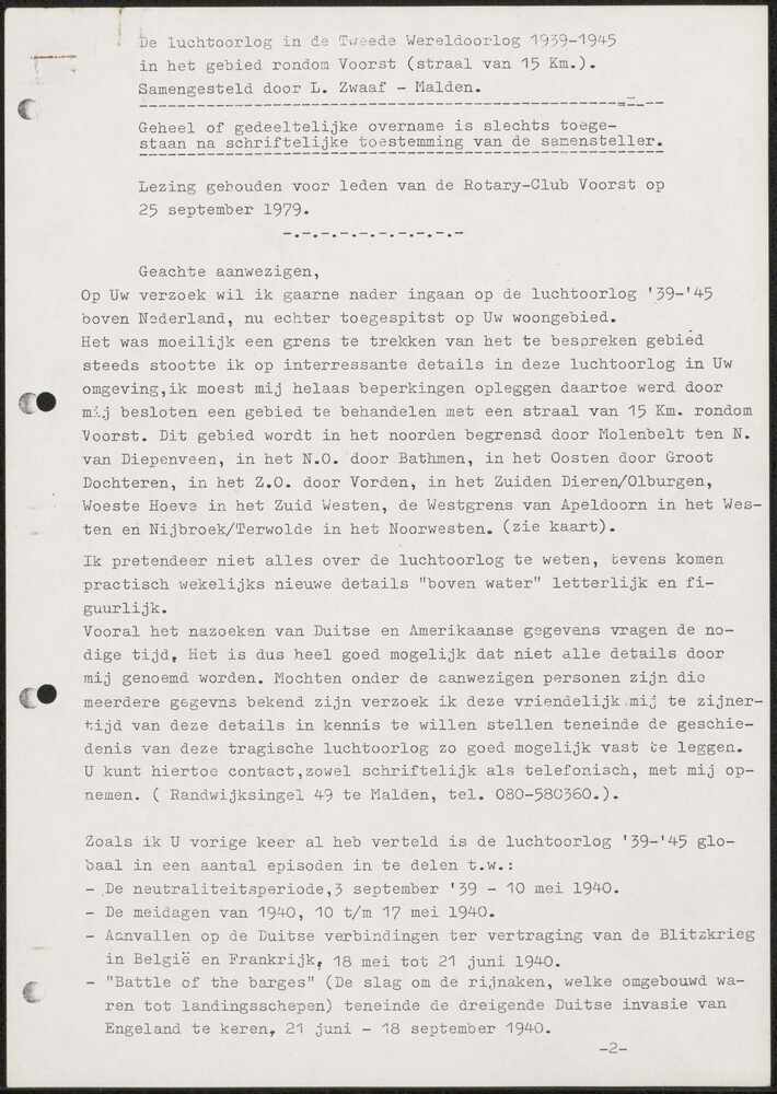 De Luchtoorlog in het gebied rondom Voorst