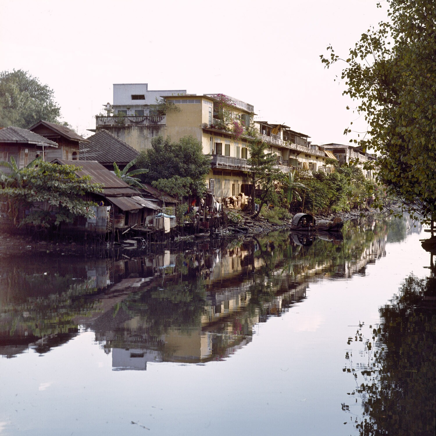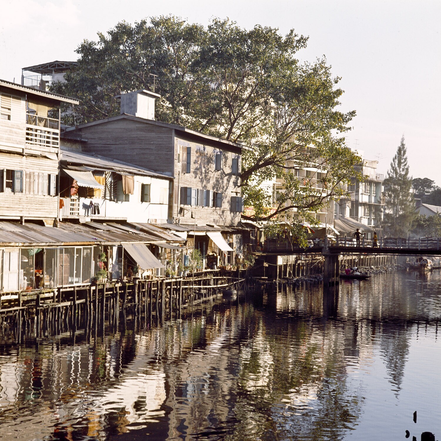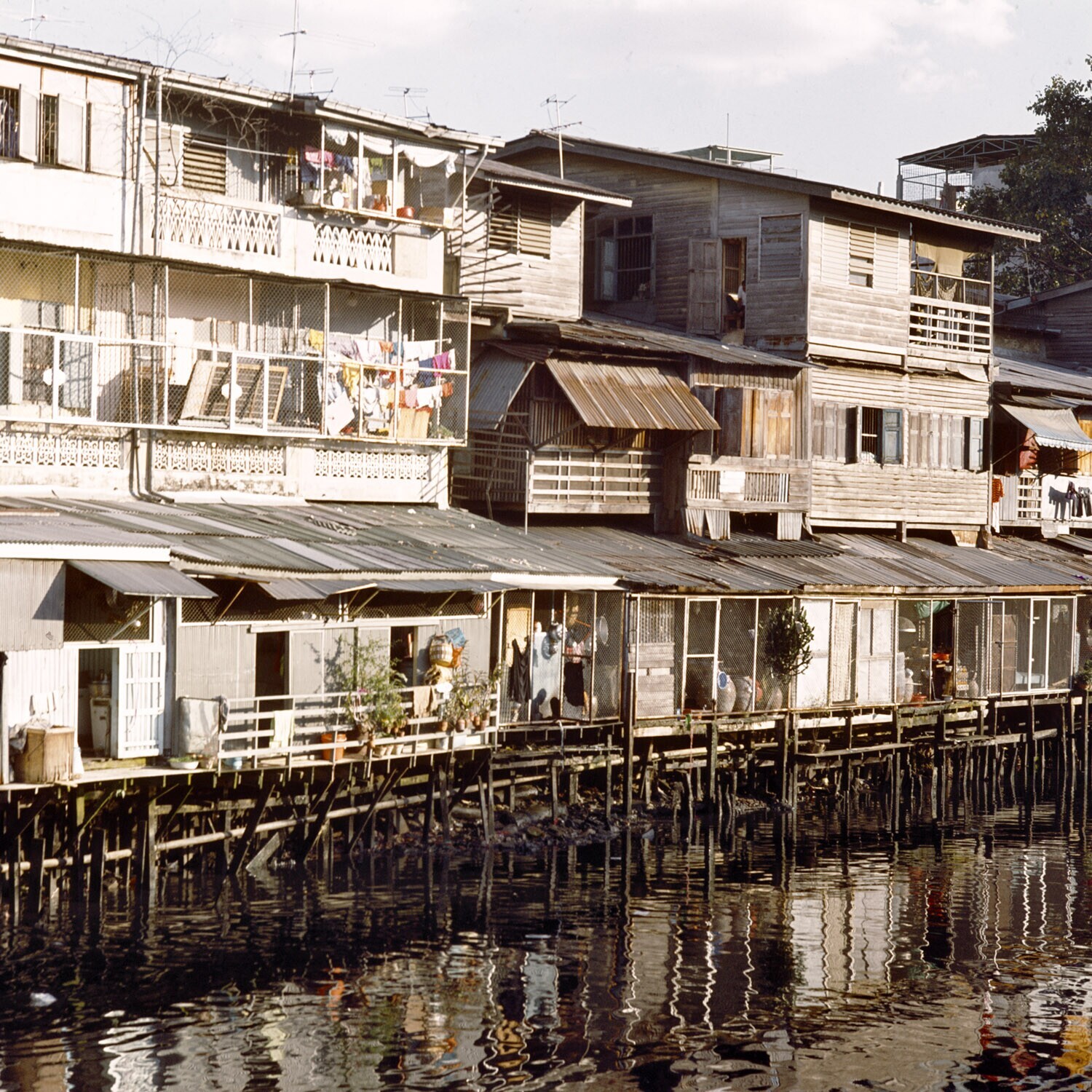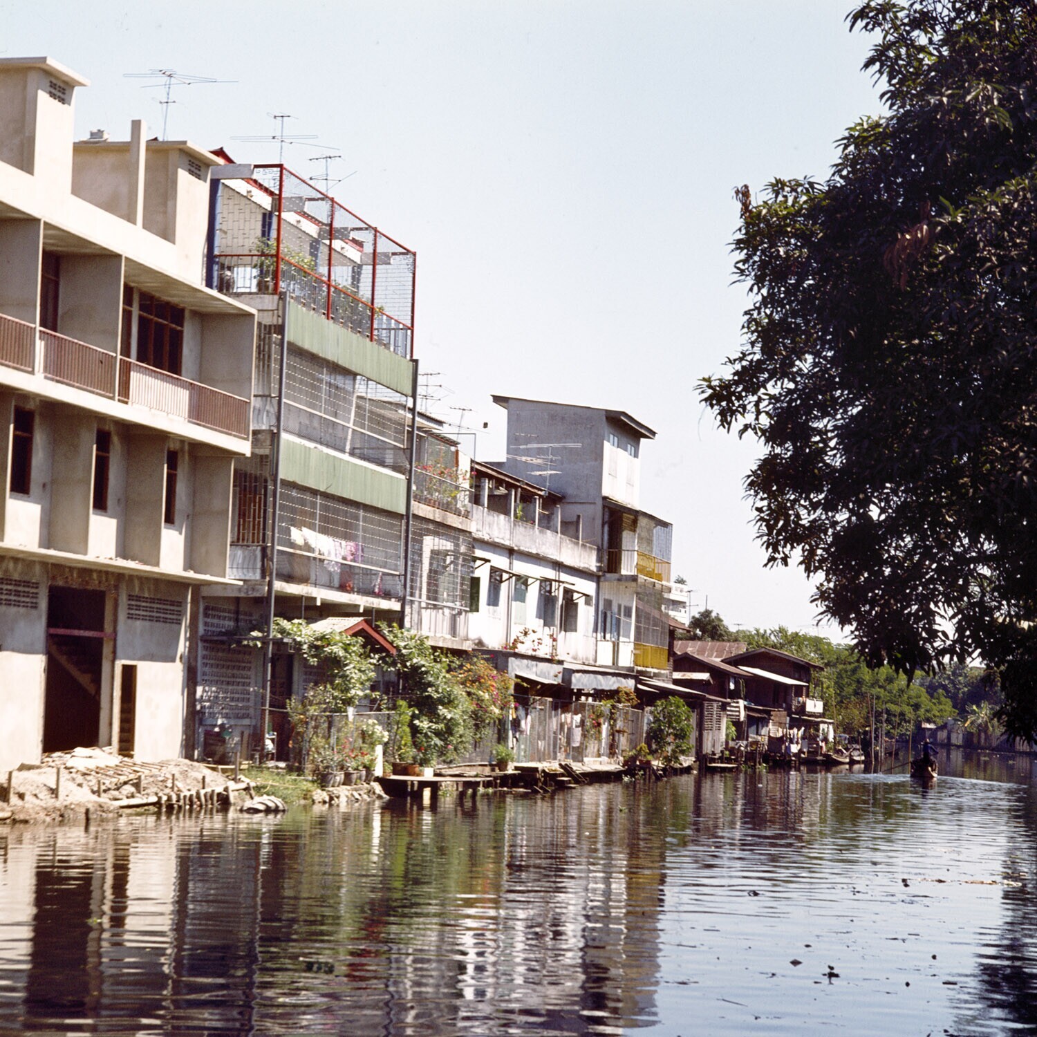Huizen langs een klong in Bangkok