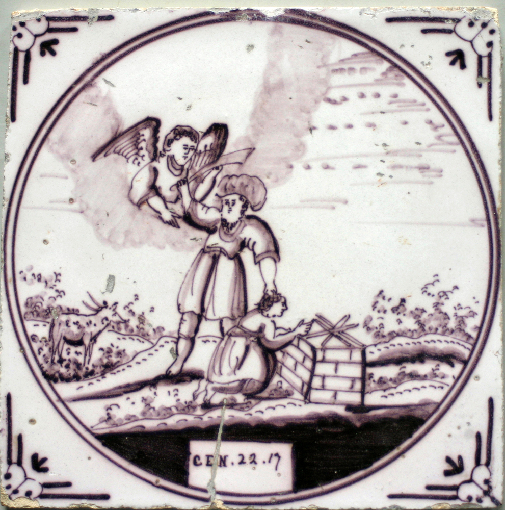 tegel van keramiek met tinglazuur, voorstellende: Ab...