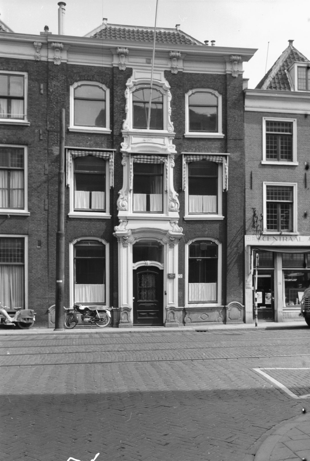 Voorgevel van pand met lijstgevel, pilasters en gede...