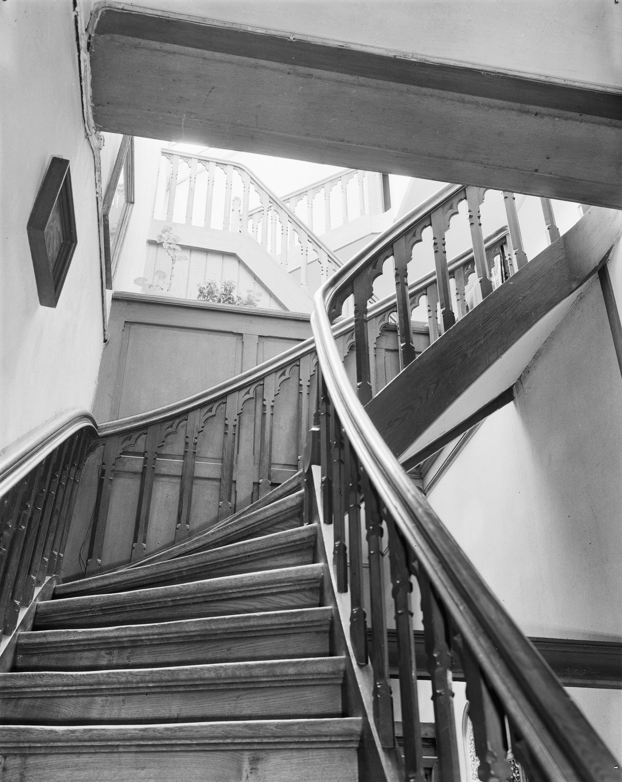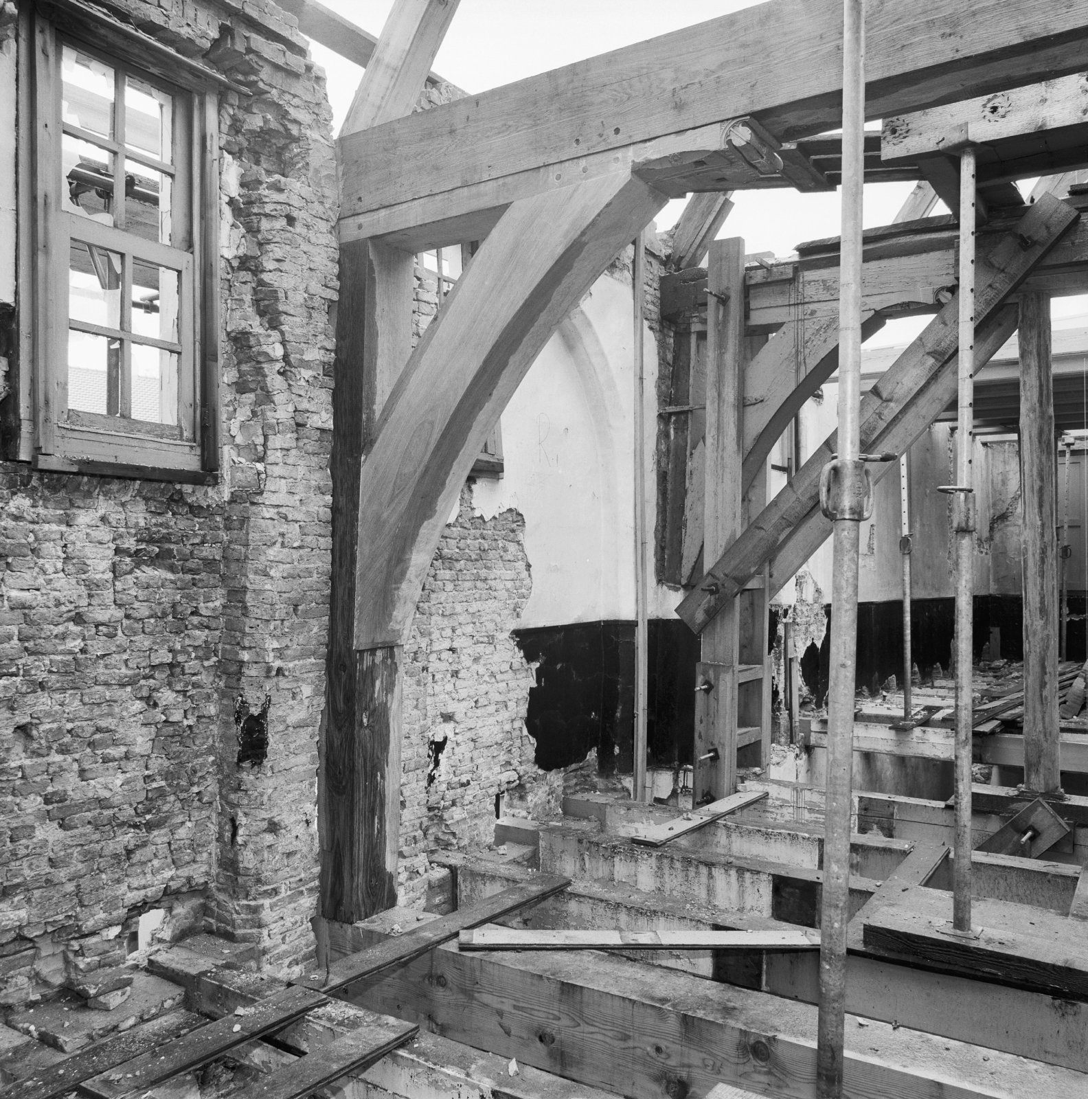 Interieur, gedeelte muur achterbouw 1e verdieping in...