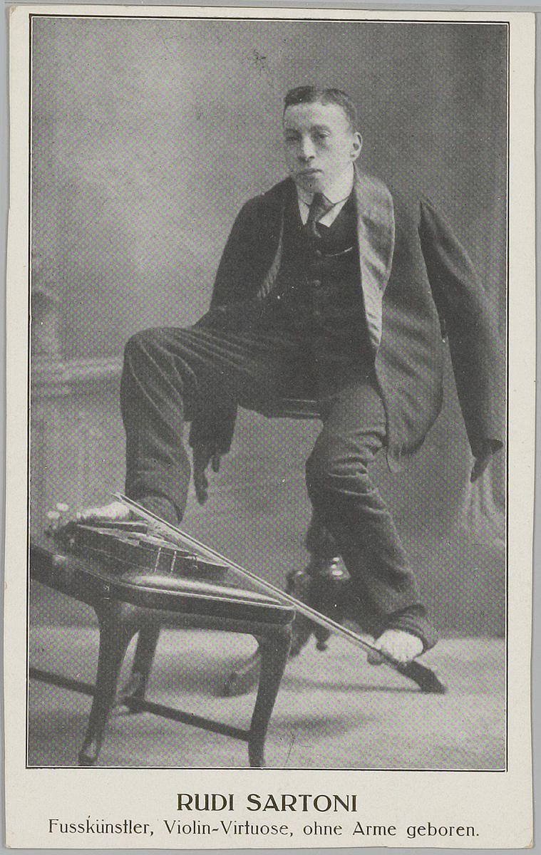 Rudi Sartoni. Fusskünstler, Violin-Virtuose. Ohne Ar...