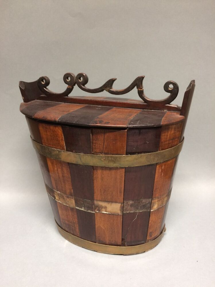 Tabaksdoos in de vorm van een tobbetje met drie kope...