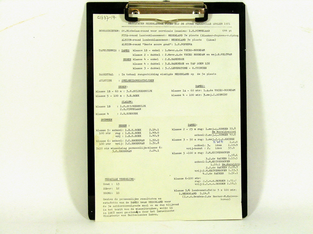 Getypt éénbladig Nederlands resultatenlijst Mandevil...