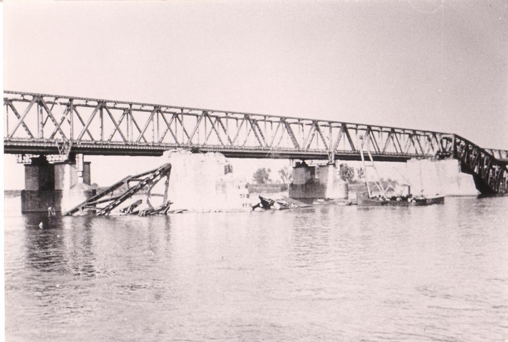Schade en herstel aan de spoorbrug van Hedel.