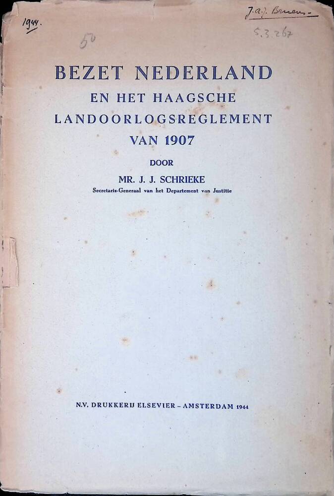 Mr. J.J. Schrieke, Bezet Nederland en het Haagsche L...