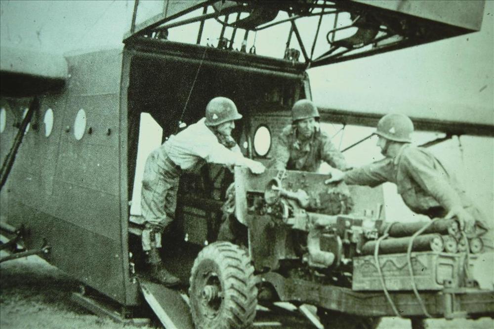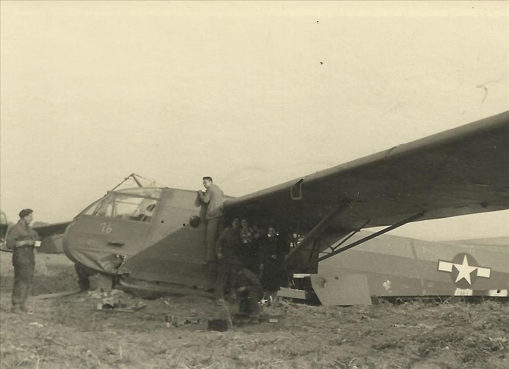 twee militairen bij Waco zweefvliegtuig