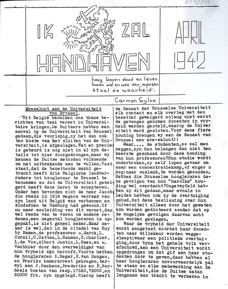 Ik zal Handhaven, april 1942
