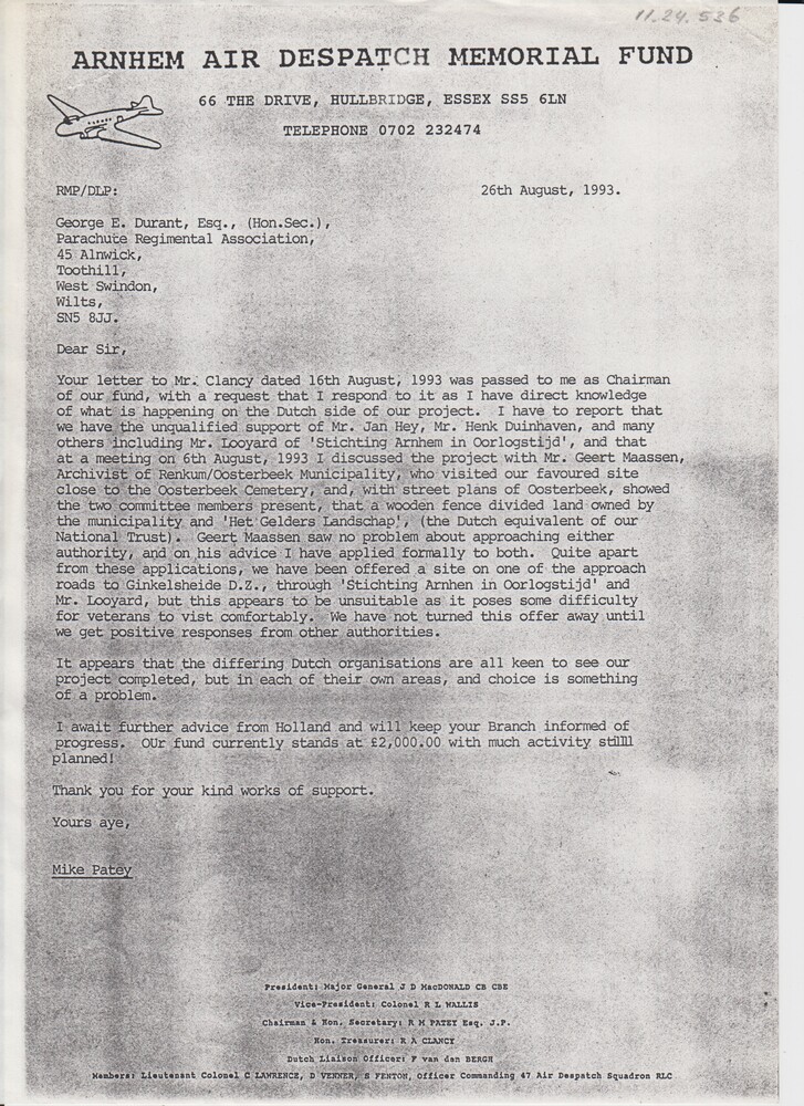 brief van de Arnhem Air Despatch Memorial Fund aan d...