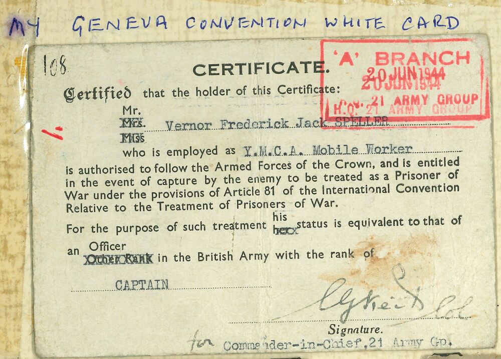 Geneva convention white card, Jack Speller