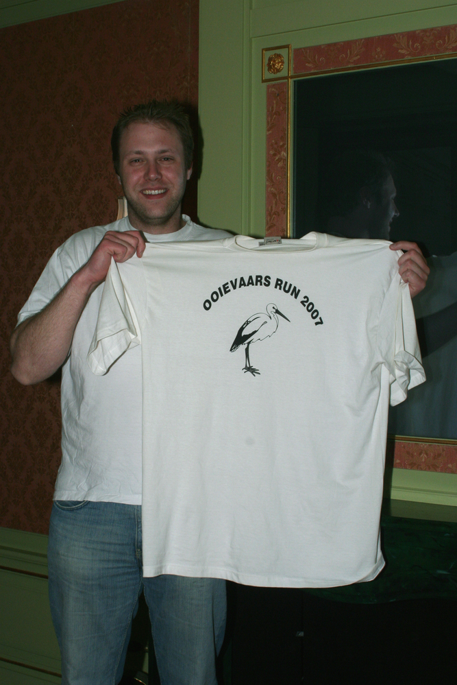 Het topstuk (t-shirt van de ooievaars run) van Niels...
