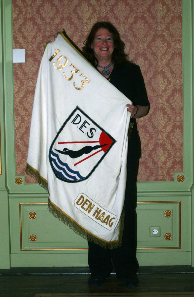 Het topstuk (vaandel zwemvereniging DES) van Katinka...
