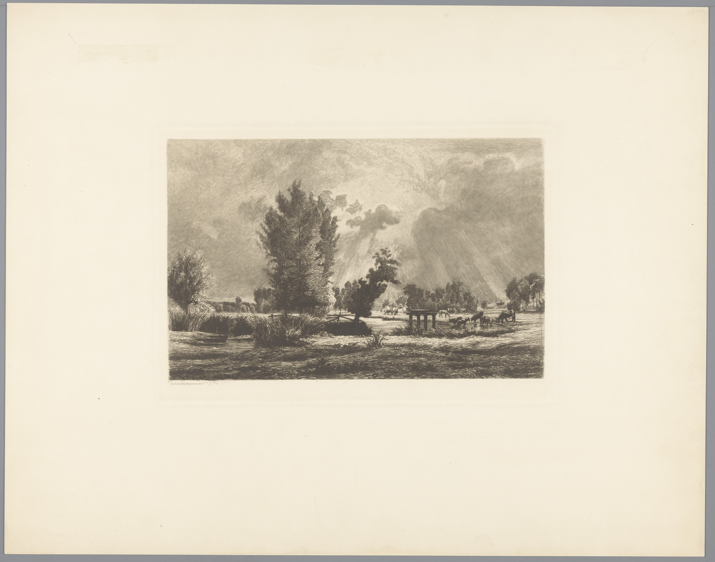 Landschap met drinkende en grazende koeien