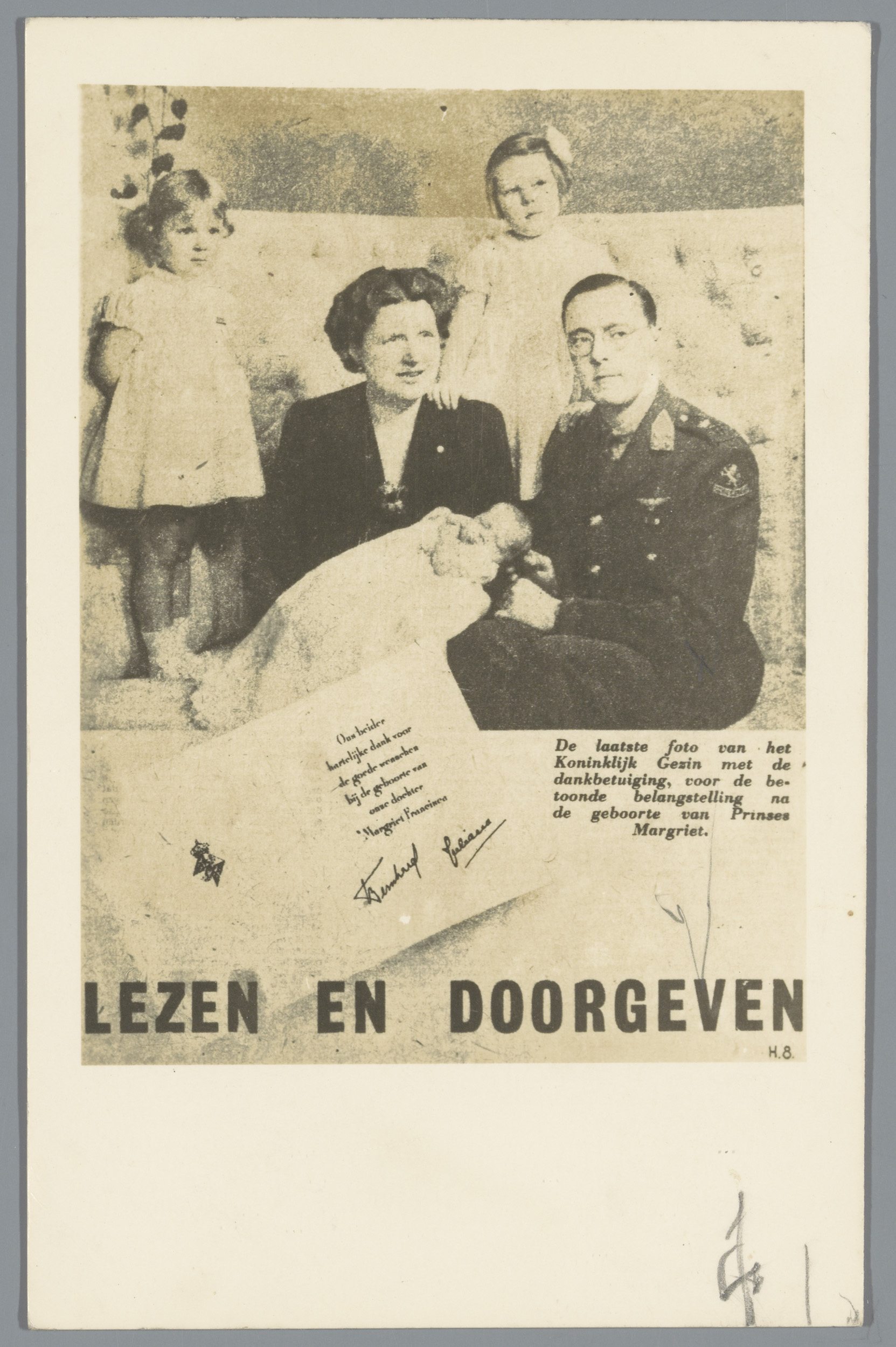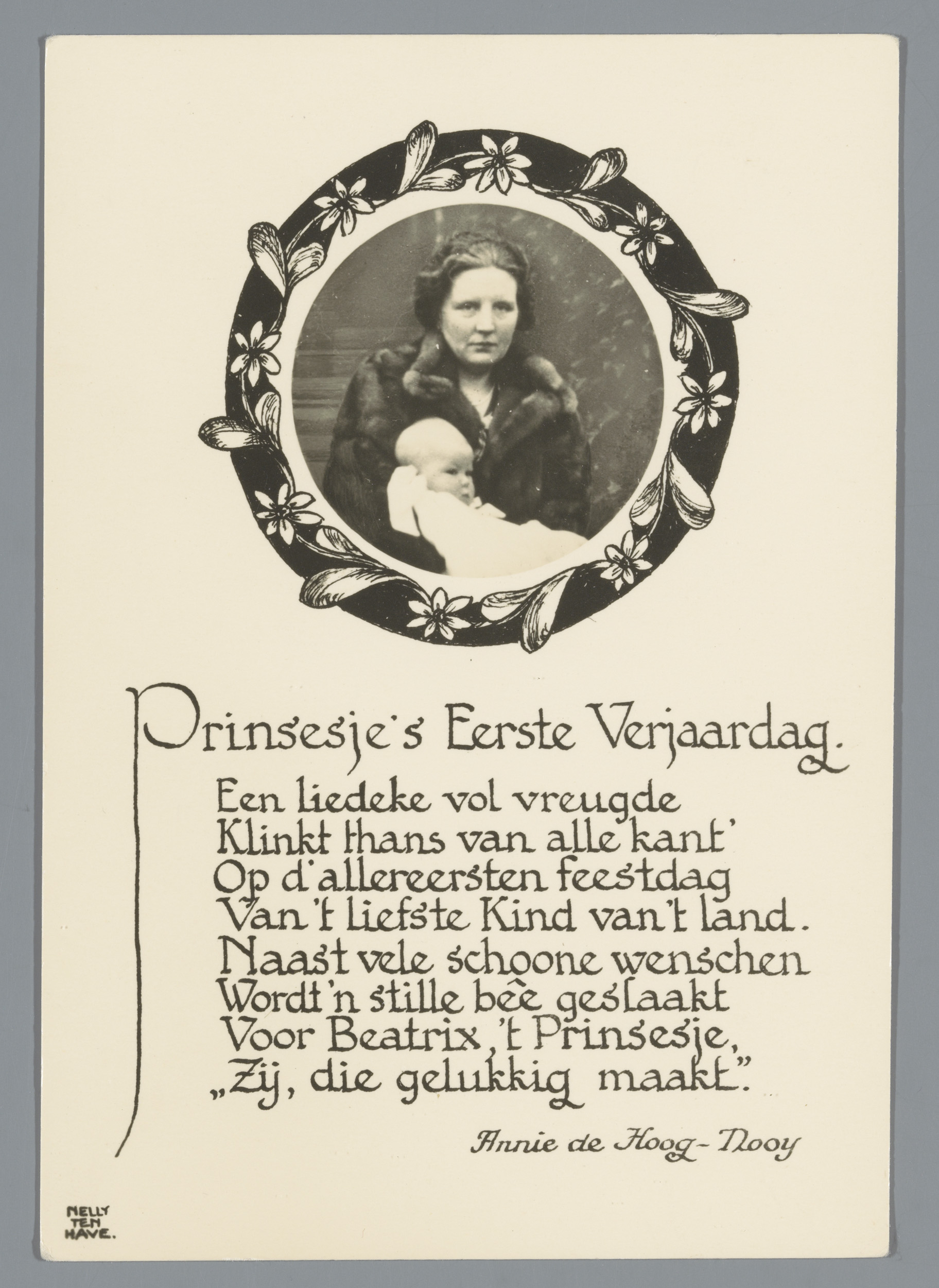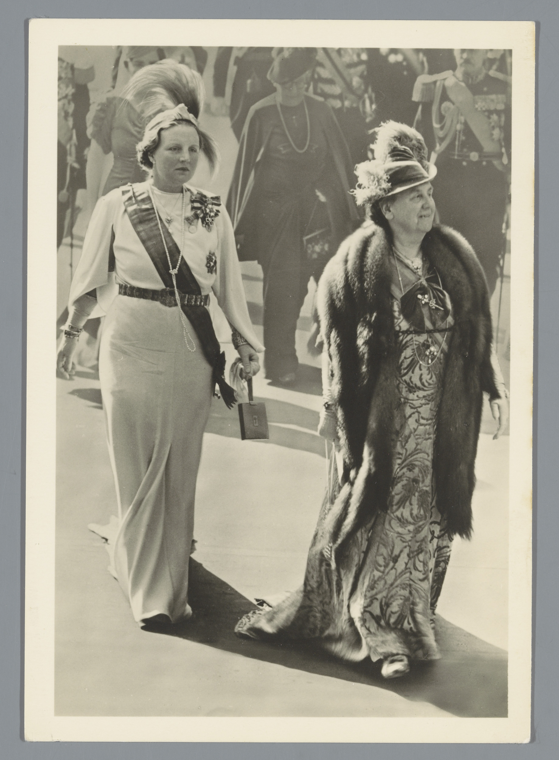Portret van koningin Wilhelmina, met daarnaast een g...