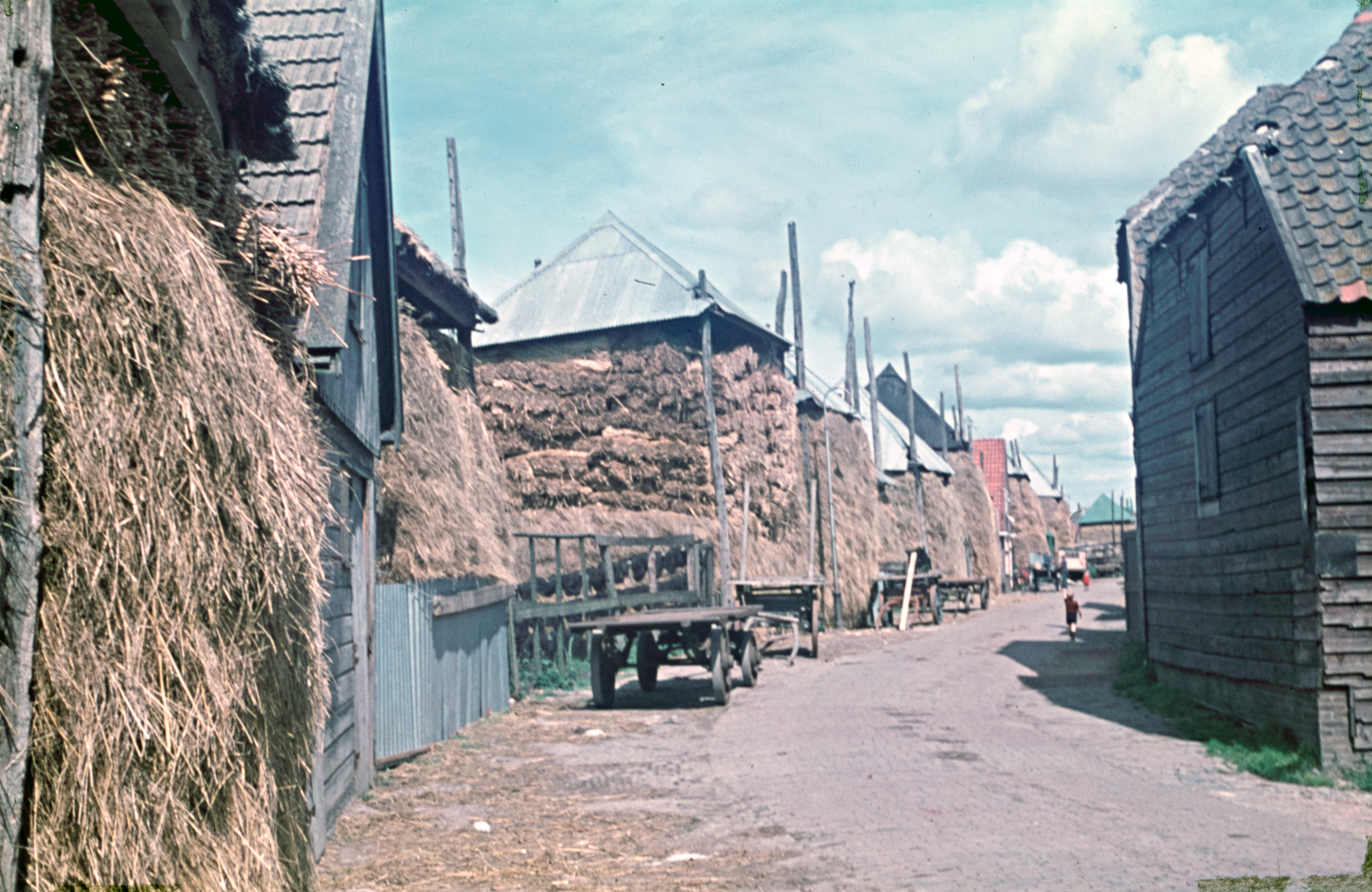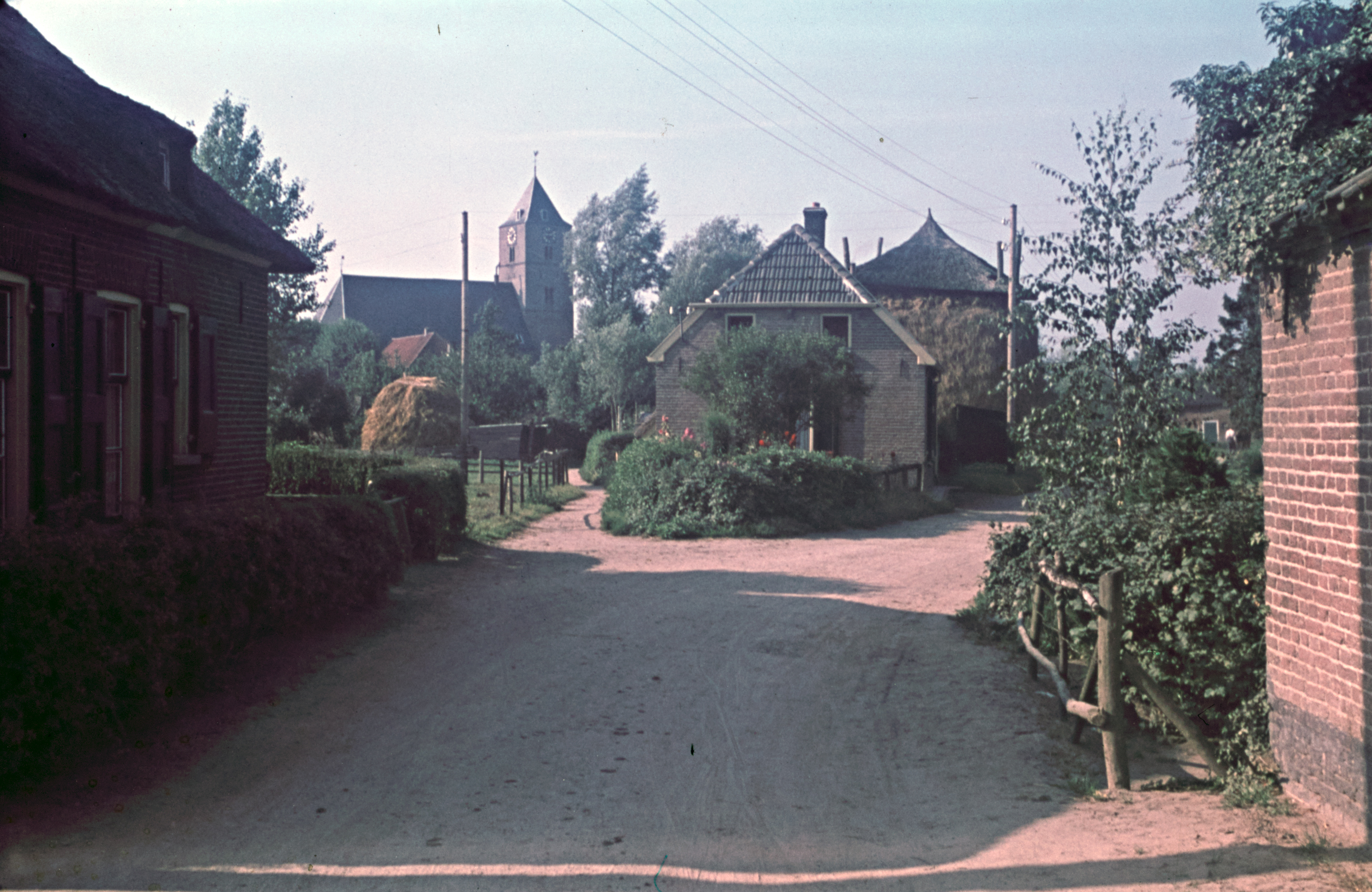Landschap met hooibergen en de kerk van Genemuiden i...