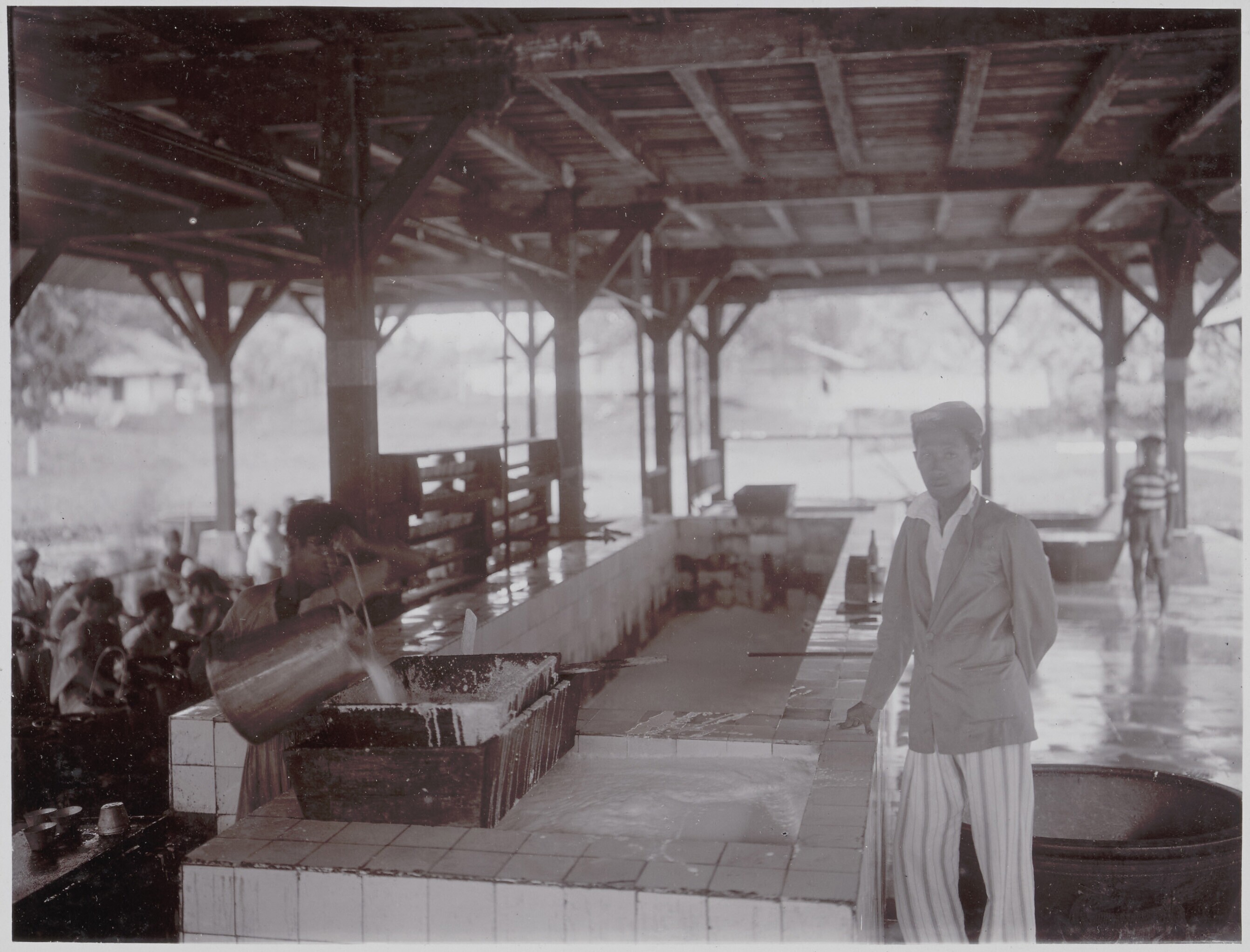 Weighing tapped latex in the rubber factory
