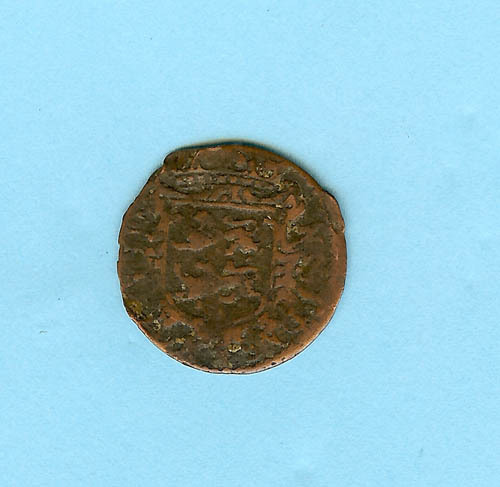 Duit van Deventer, voorzijde gekroond wapenschild va...