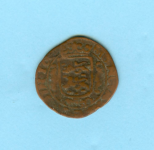 Duit met gekroond wapenschild van Friesland en NOBISCV
