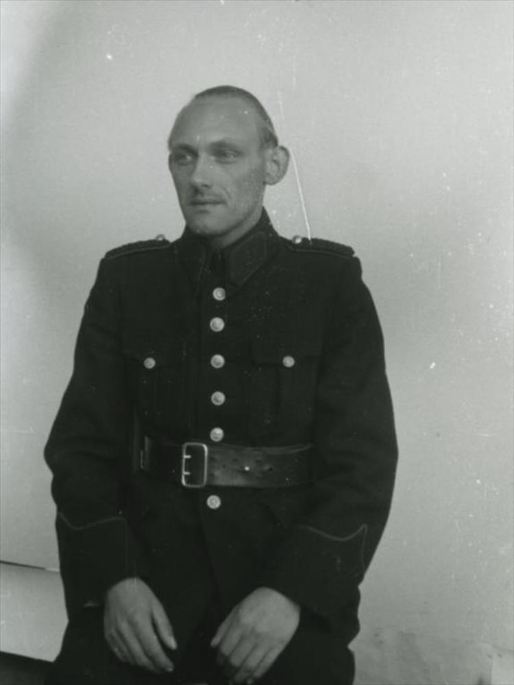 Foto (portret) van een man in politie uniform voor w...