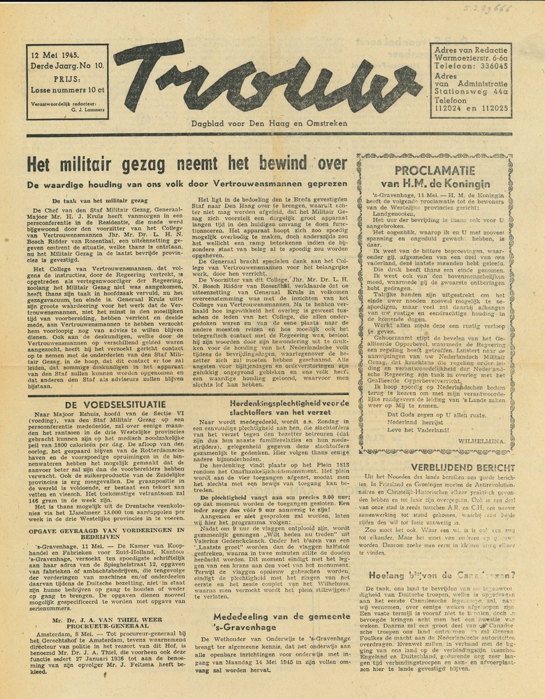 Trouw 12 mei 1945