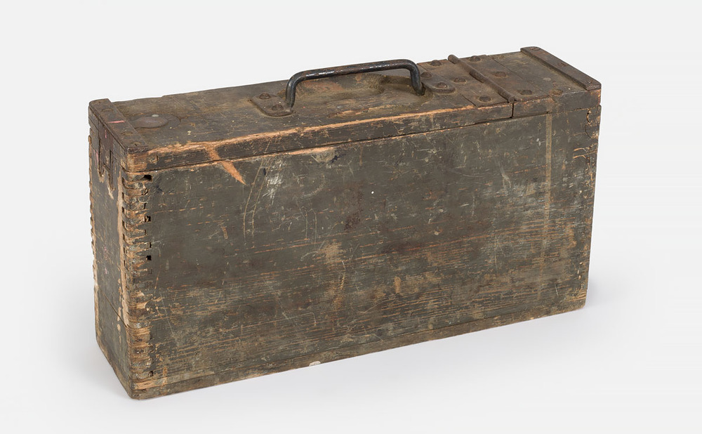grijs/groene houten munitiekist