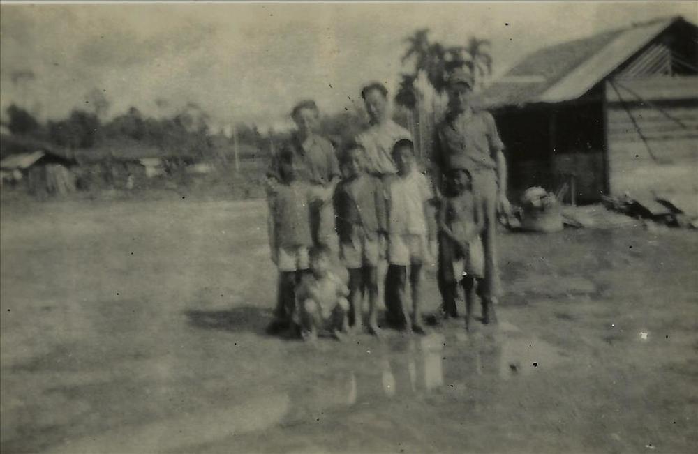 Nederlands Indië; drie militairen een kinderen