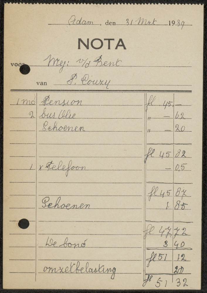 Kassabon, Nota A'dam 31 mrt 1939