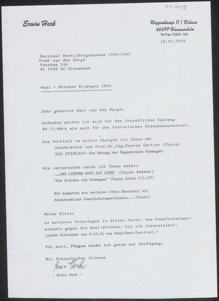 Brief van Norbert A. De Groot uit Enschede aan Hans ...