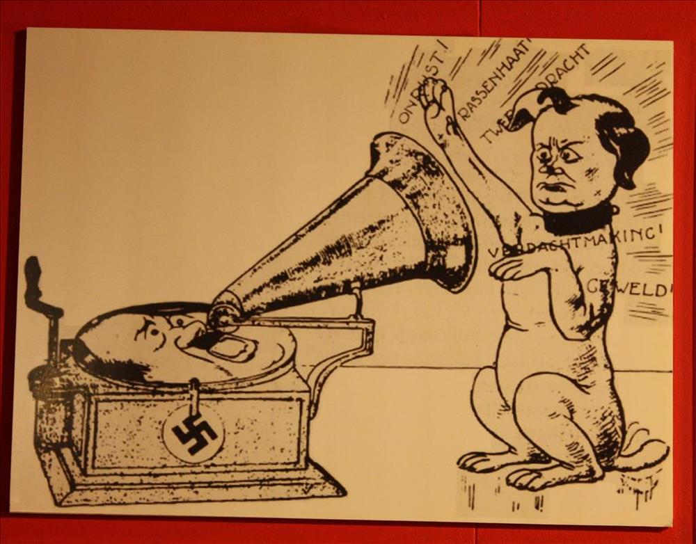 Mussert luistert naar His Master's Voice (Hitler). (...