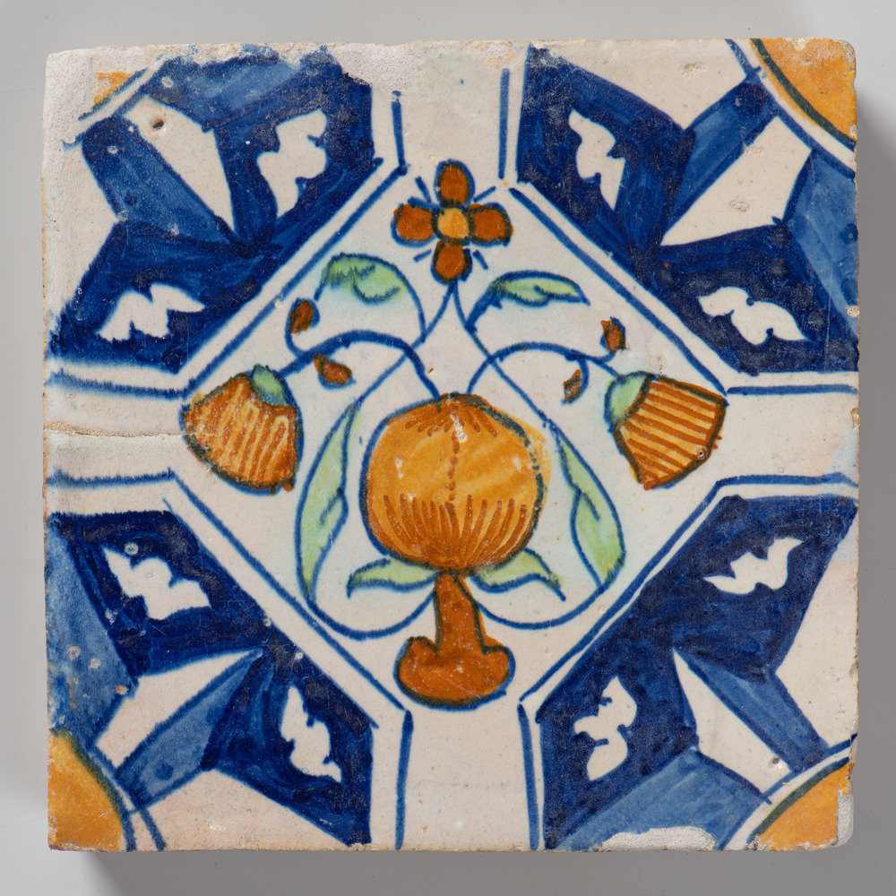 tegel van aardewerk met tinglazuur, voorstellende: o...