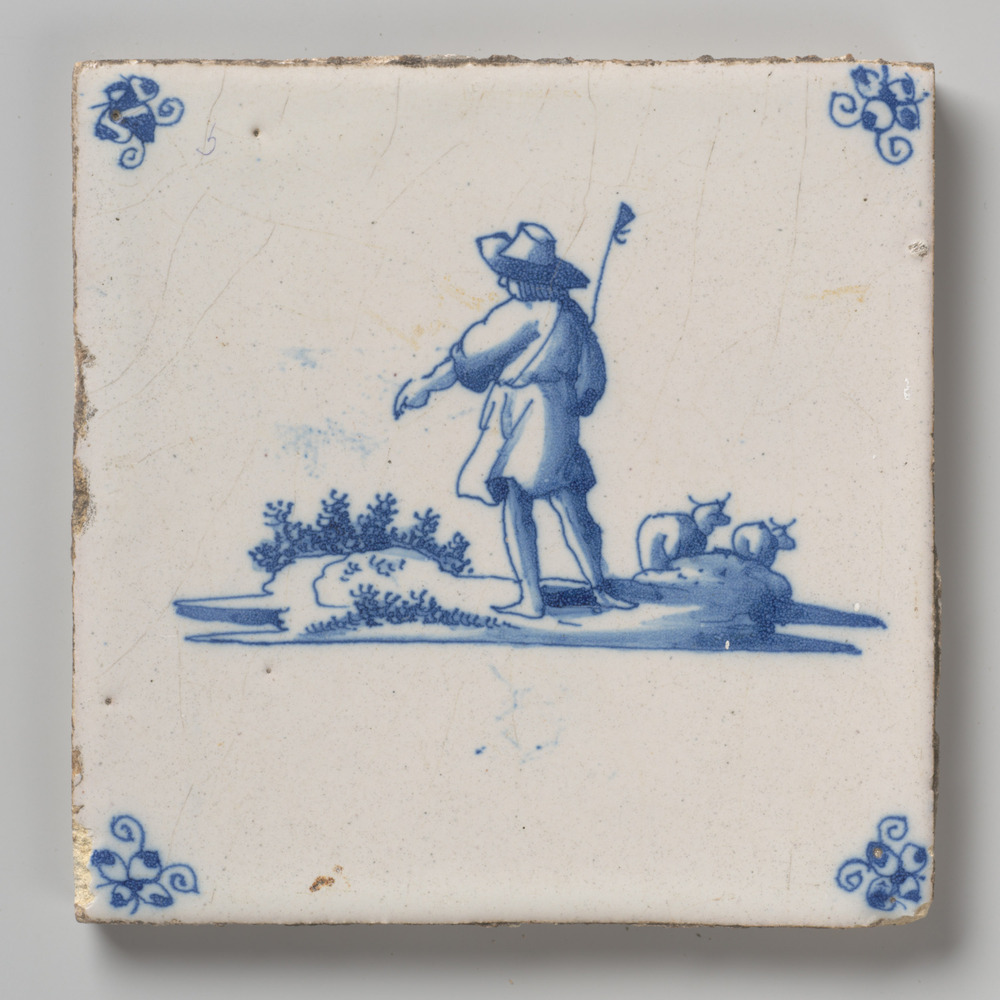tegel van aardewerk met tinglazuur, voorstellende: h...