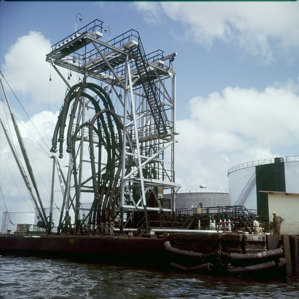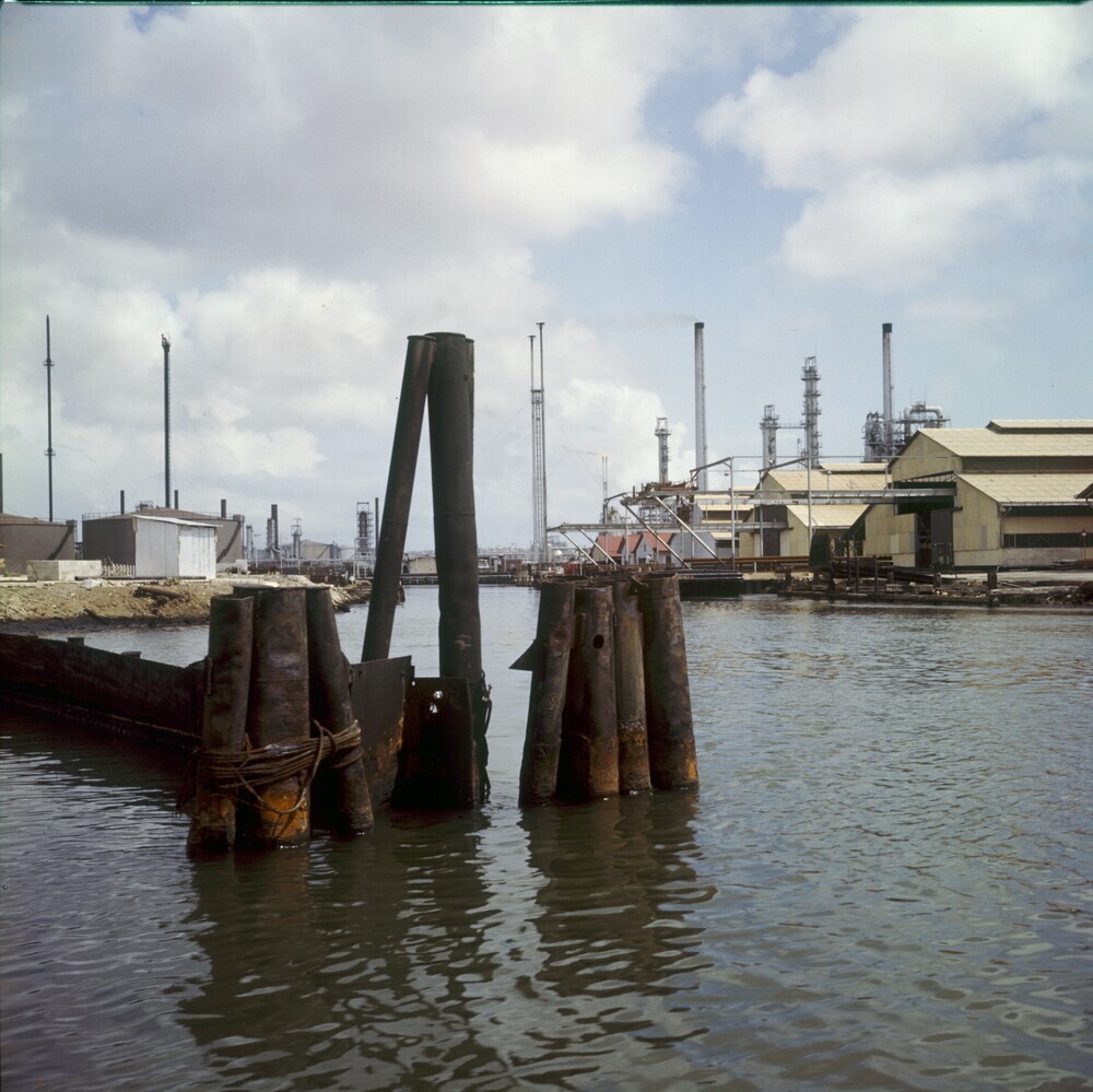 De raffinaderijen van het Shellcomplex vanaf het Sch...