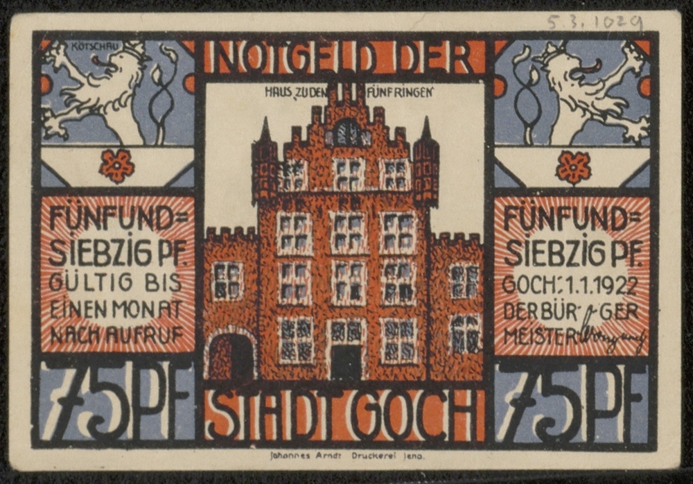 Bankbiljet, Noodgeld, Gemeente Goch, 75 Pfennig