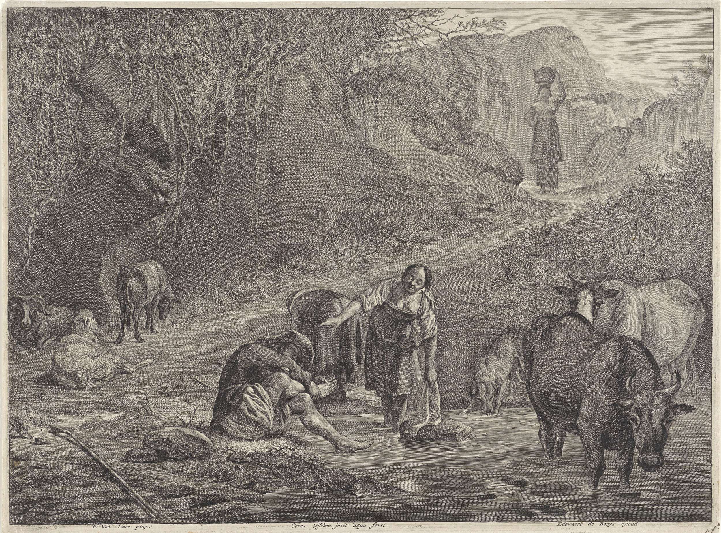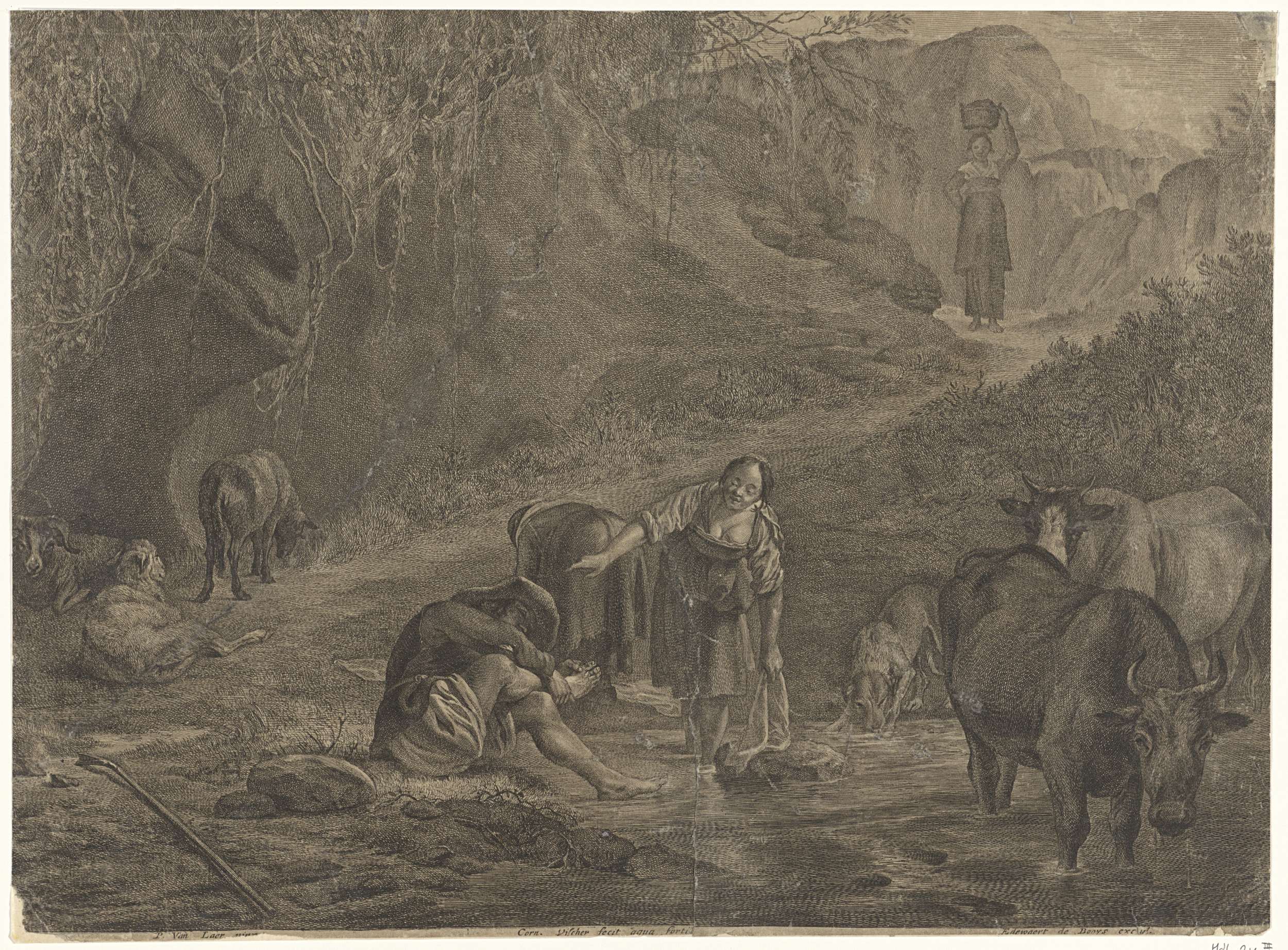 Wasvrouwen en een herder aan de waterkant