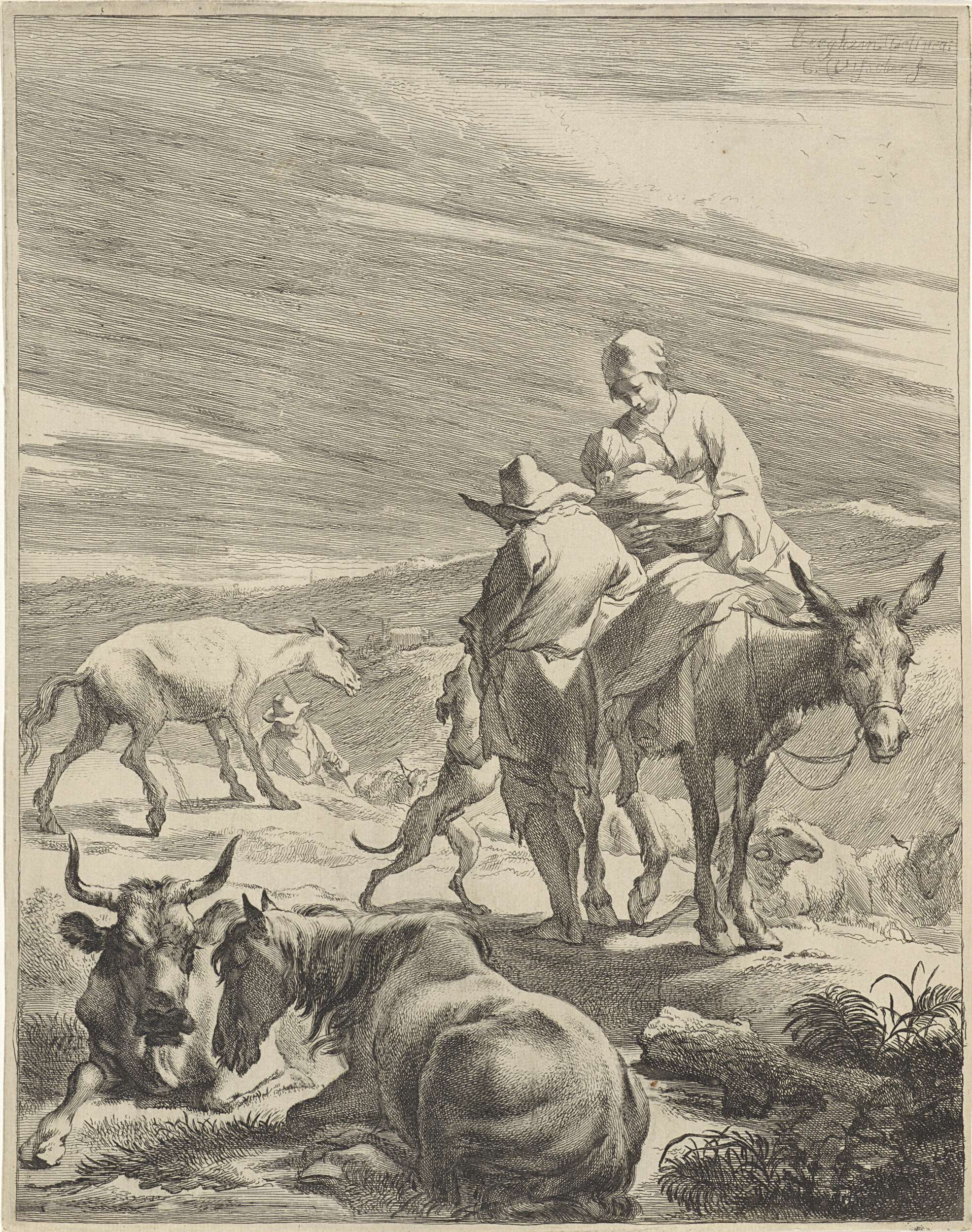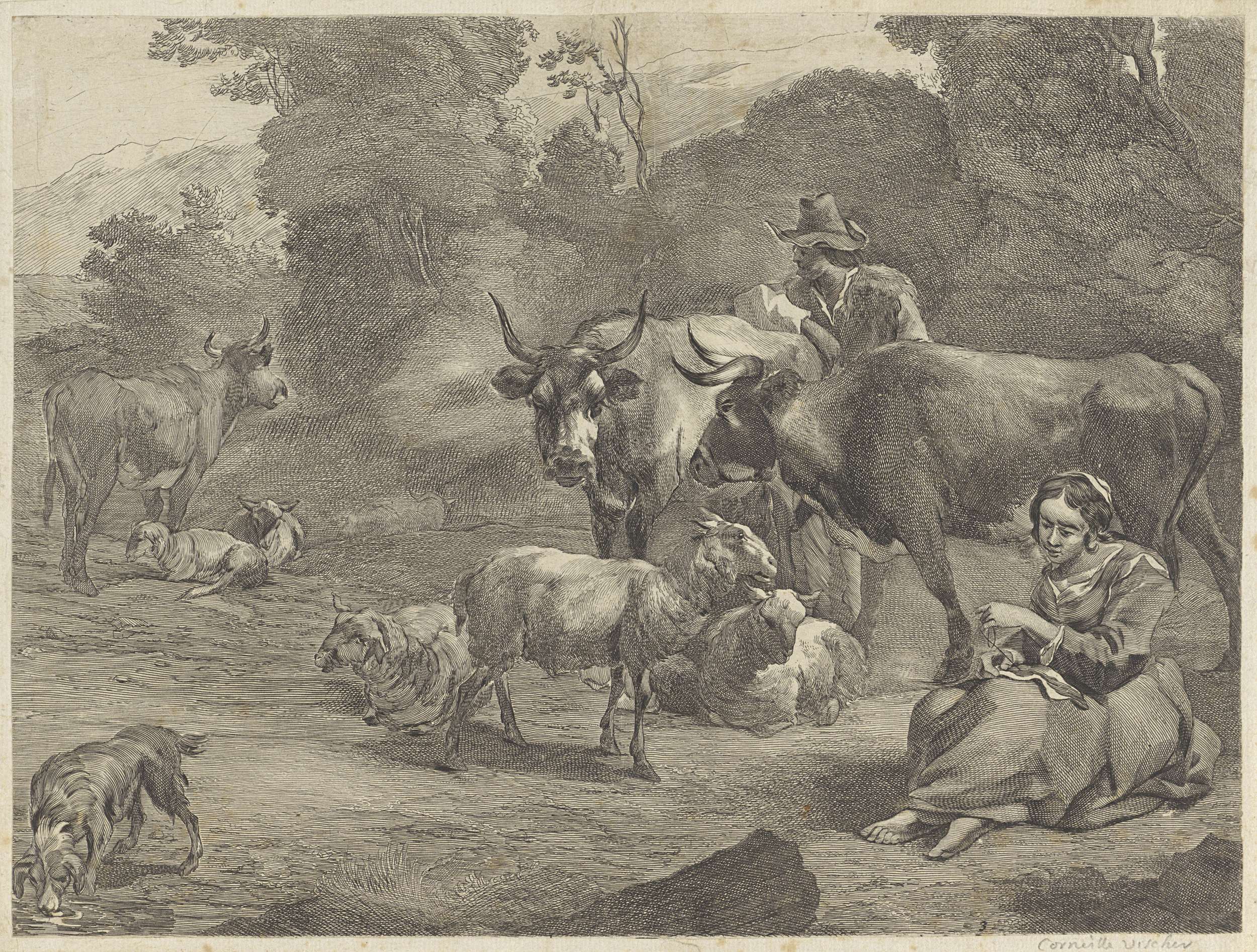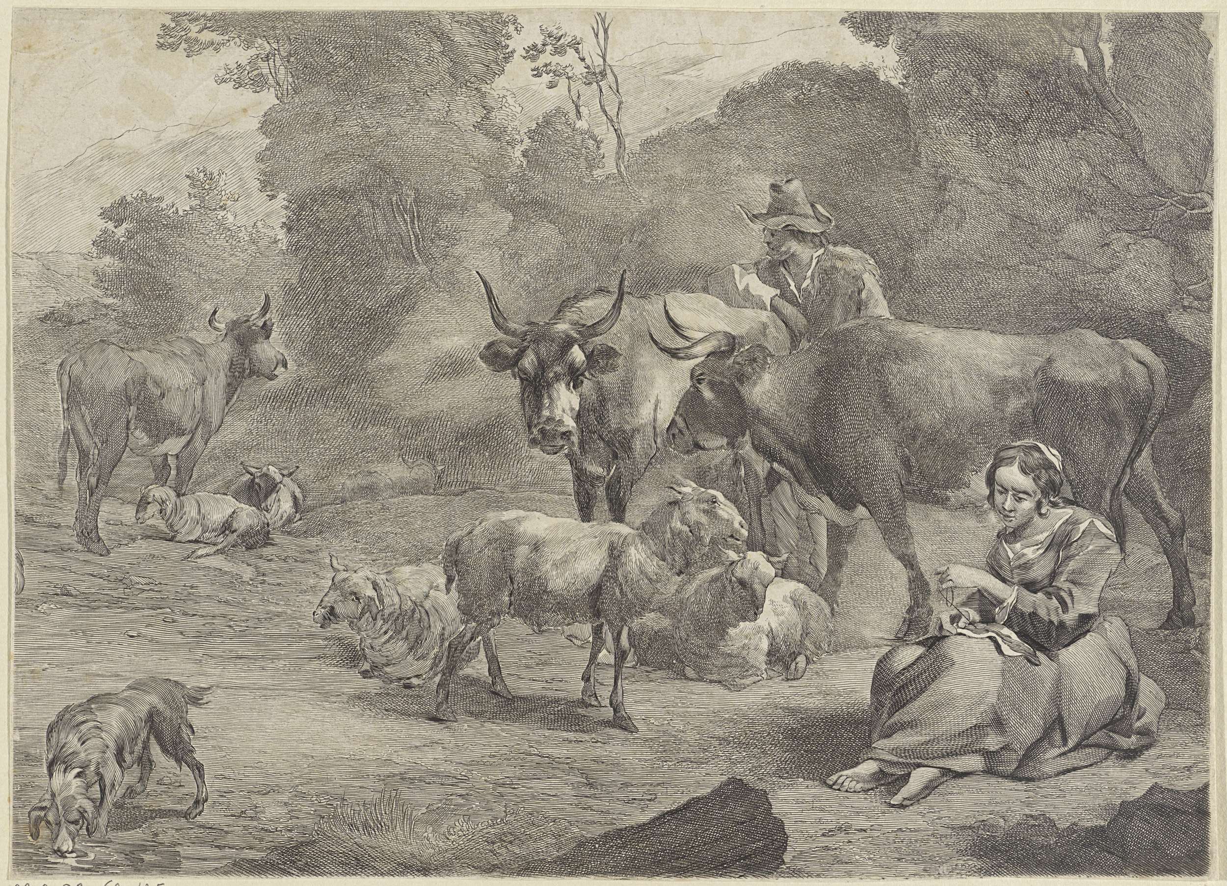 Landschap met een herder en een naaiende herderin