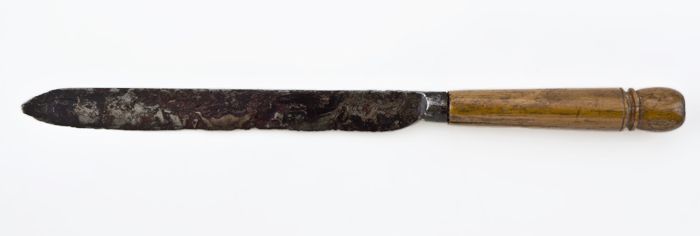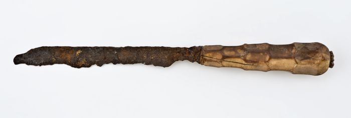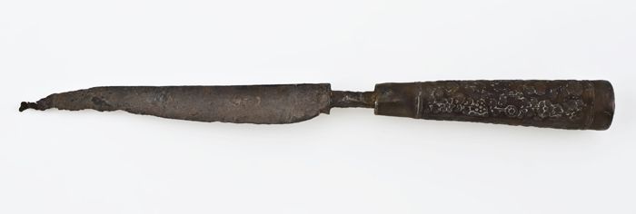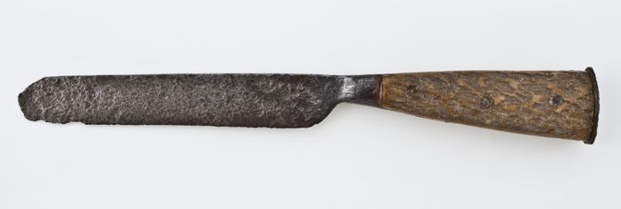 Mes met smal, langwerpig lemmet en benen heft met ro...