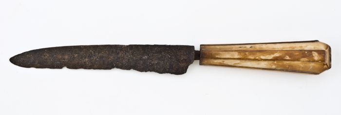 Mes met smal langwerpig lemmet en hoornen heft met o...
