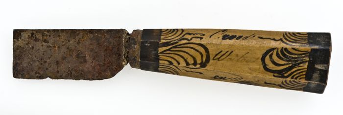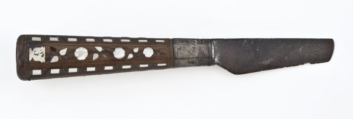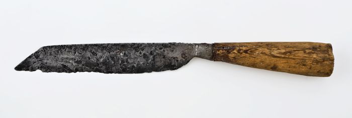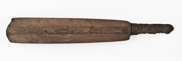 Mes met langwerpig ijzeren lemmet en houten heft, be...