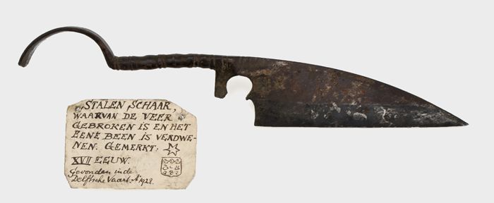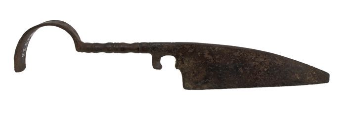 IJzeren hakmes met rechthoekig blad en puntig toelop...