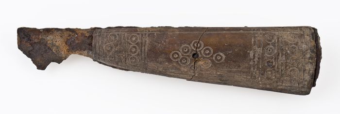 Mes met ijzeren lemmet en houten heft met ronde door...