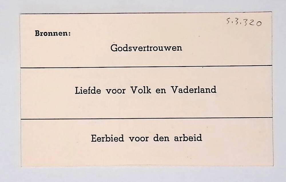 Kartonnen vel, 3 horizontale banden "Bronnen: Godsve...