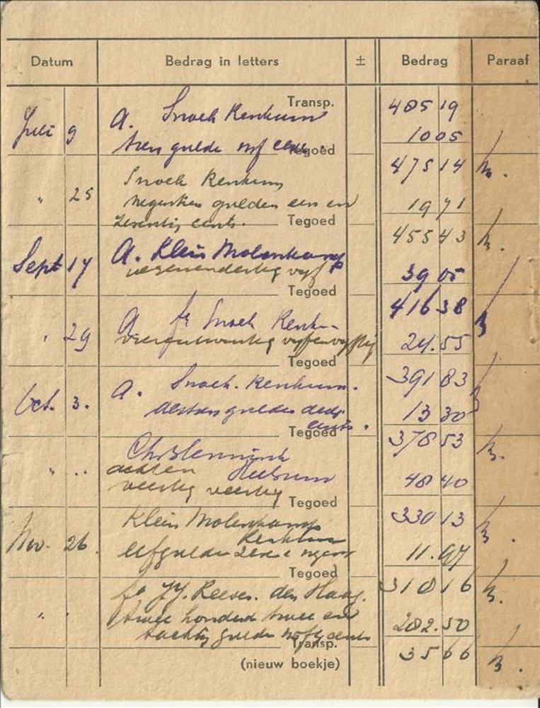 Spaarboekje - huisraadschade - mevr. A.C. Triebart t...