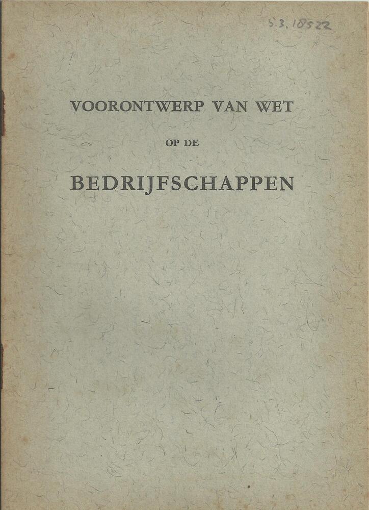 Voorontwerp van wet op de bedrijfschappen.