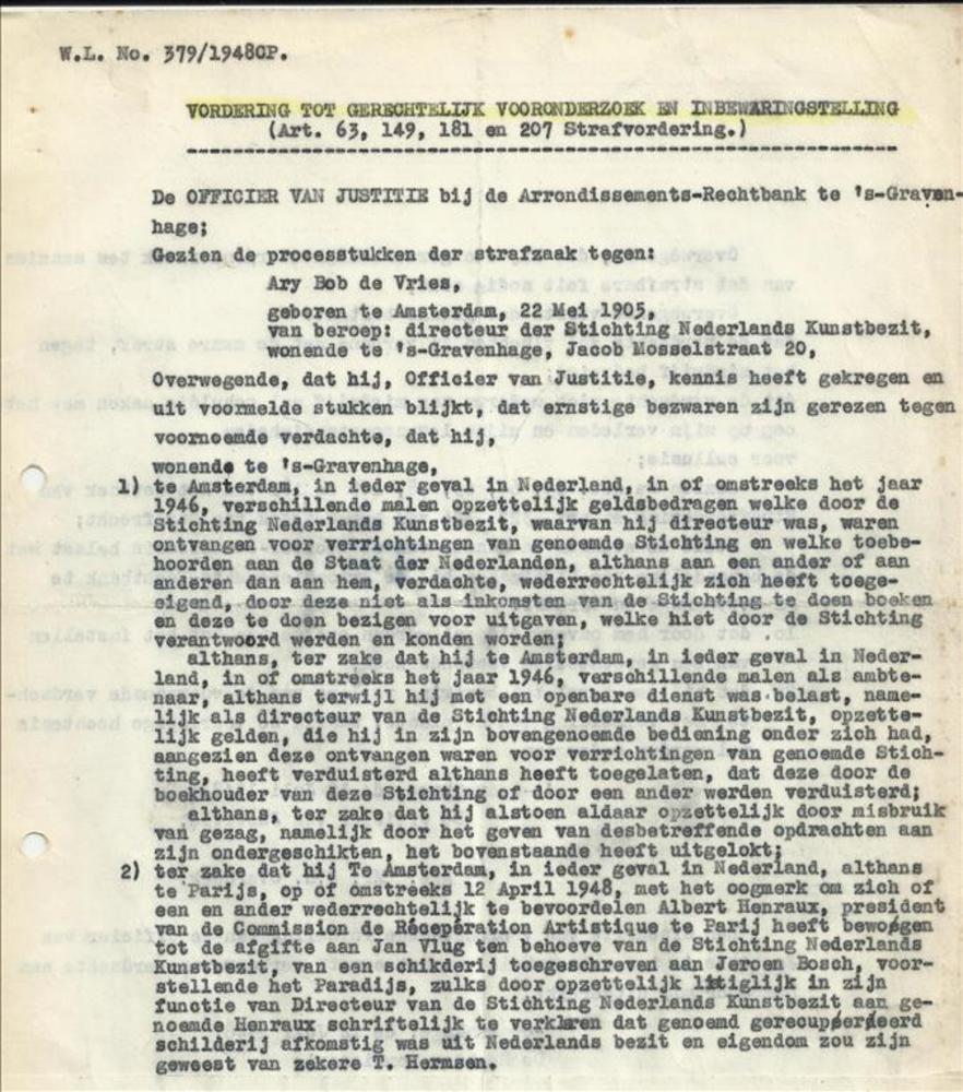 vordering tot gerechtelijk vooronderzoek en inbewaar...